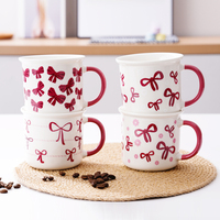 New Design Red Ribbon with Colorful Handel Ceramic Mugs Cup Ceramic Mug with Custom Design